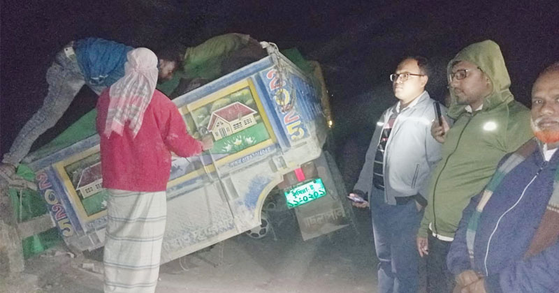 স্থানীয় সূত্রে জানা যায়, ট্রাকটি সিমেন্ট নিয়ে কালিকাপুরের দিকে যাওয়ার সময় ব্রিজের ওপর উঠতেই হঠাৎ পাটাতন ভেঙে যায়। এতে ট্রাকটির একটি অংশ ব্রিজের ভেতরে ঢুকে পড়ে এবং সেটি সেখানেই আটকে যায়।